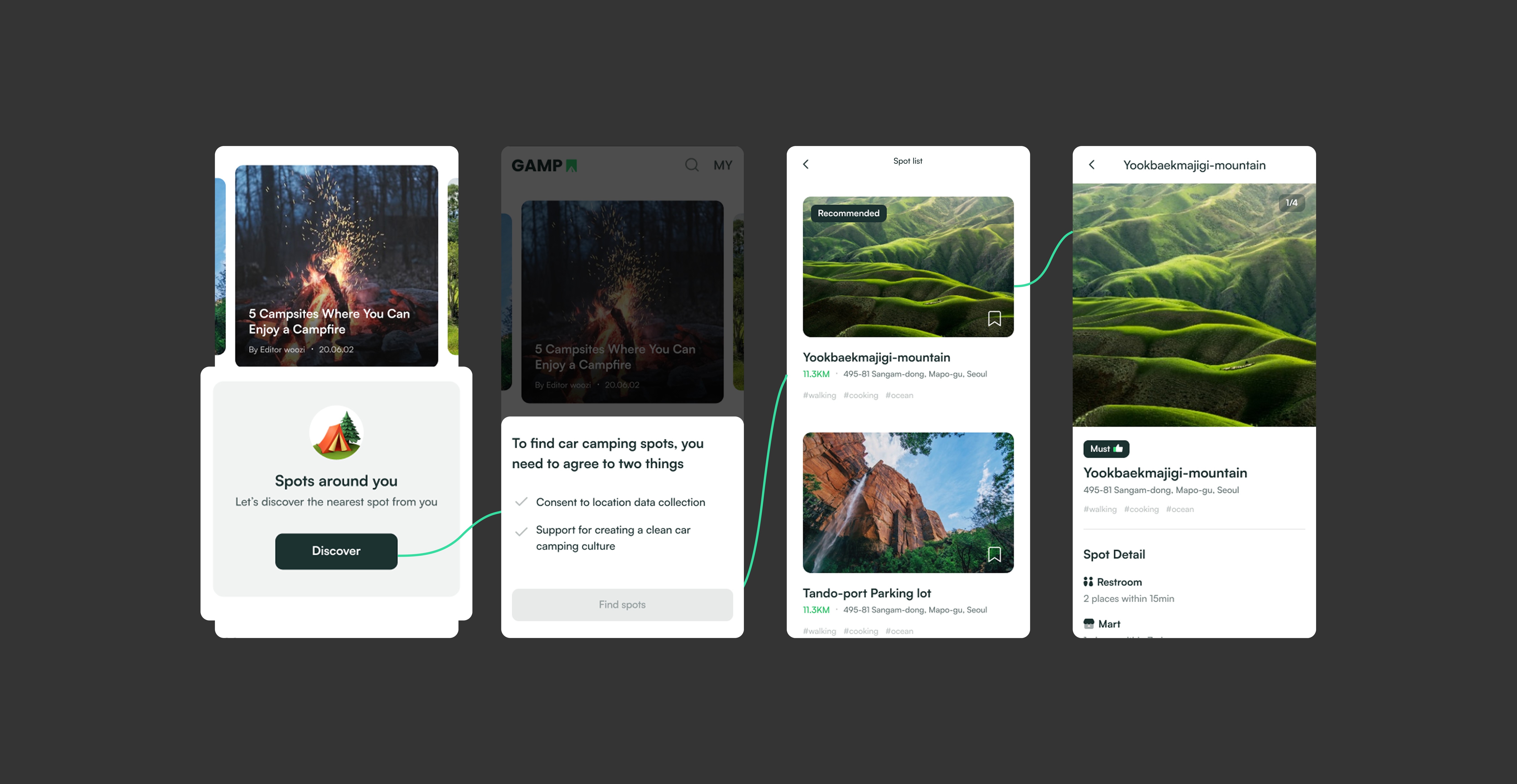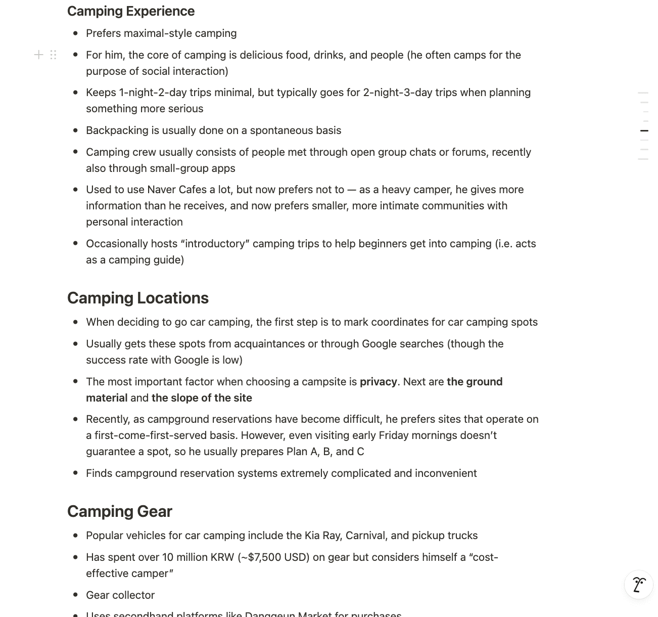 Through these interviews, We discovered that the core issue for campers was 'finding the right location,' which led me to formulate a hypothesis and run an experiment.